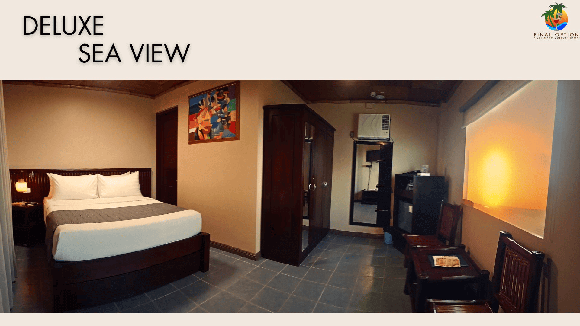 A perfect sunset awaits a minimum of 2 guests in this fully air-conditioned room with sea view. The native interior design with added features such as solar powered hot and cold shower and bath amenities, Flat screen TV with USB ports, Safety Deposit Box, In room Wi-fi router, intercom and a mini bar. Guests may enjoy complimentary use of Pool, Whirlpool and Cottages located at the beachfront. Non-smoking